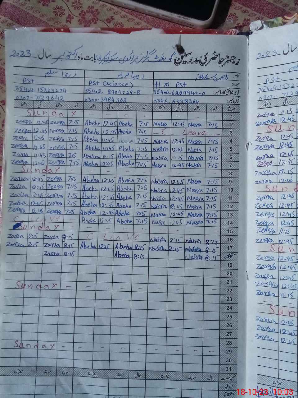 | Name: Na**** Su**** Designation: (School Headmaster's/Headmistress's) PST Phone/Cell Number: 03**** |