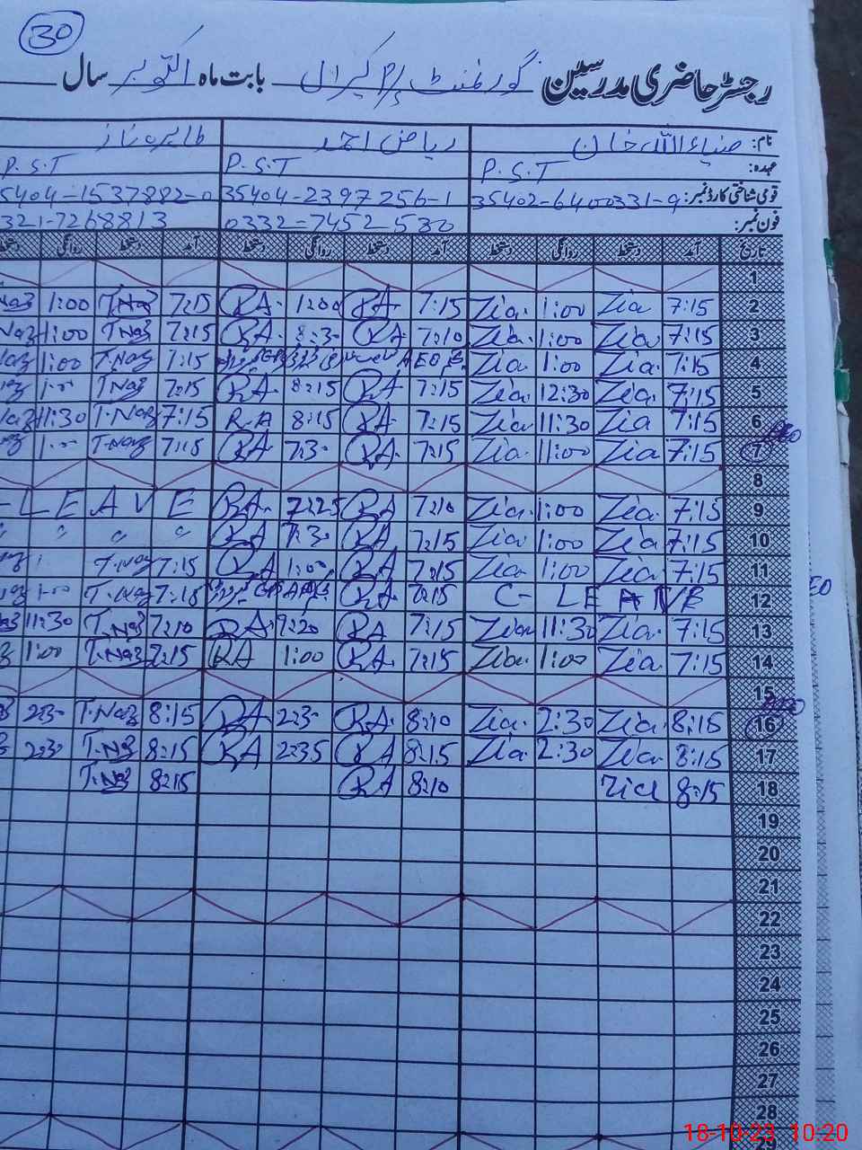 | Name: ZI**** KH**** Designation: (School Headmaster's/Headmistress's) PST Phone/Cell Number: 03**** |