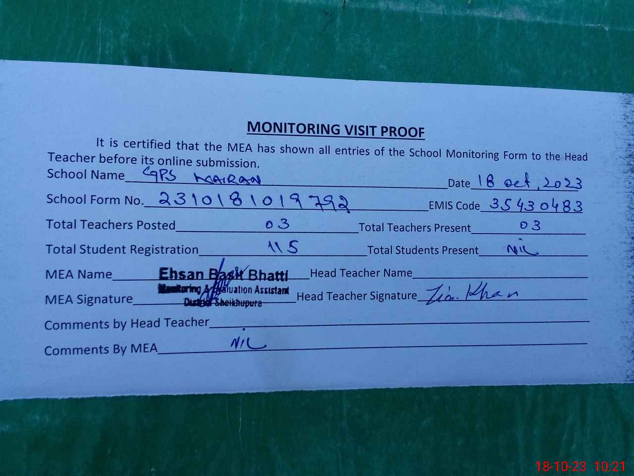 | EMIS Code: 35430483 | Name of School: GPS KAIRAN | |||