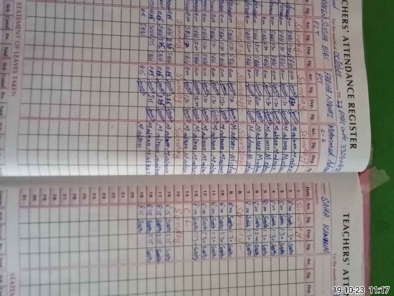 | CNIC | Full Name | Designation | R/C | Absence During Last Calender Month |