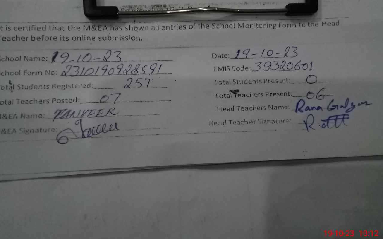 | Certified that this School was Inspected by the Undersigned MEA/DMO Today and the Information Stated Above is as Per Record. | |||||