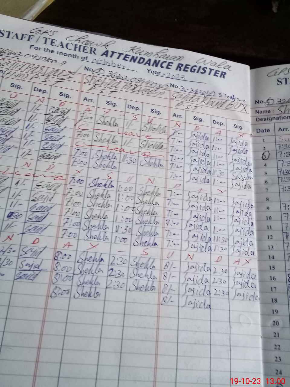 | Name: SA**** PE**** Designation: (School Headmaster's/Headmistress's) PST Phone/Cell Number: 03**** |