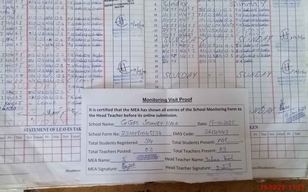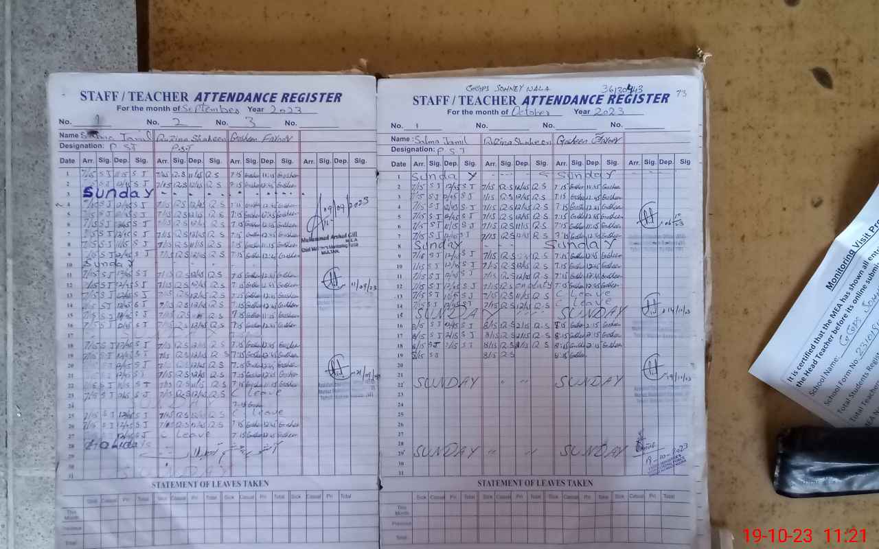 | Attendance Register | Head Teacher | MEA with School | Visit Proof |