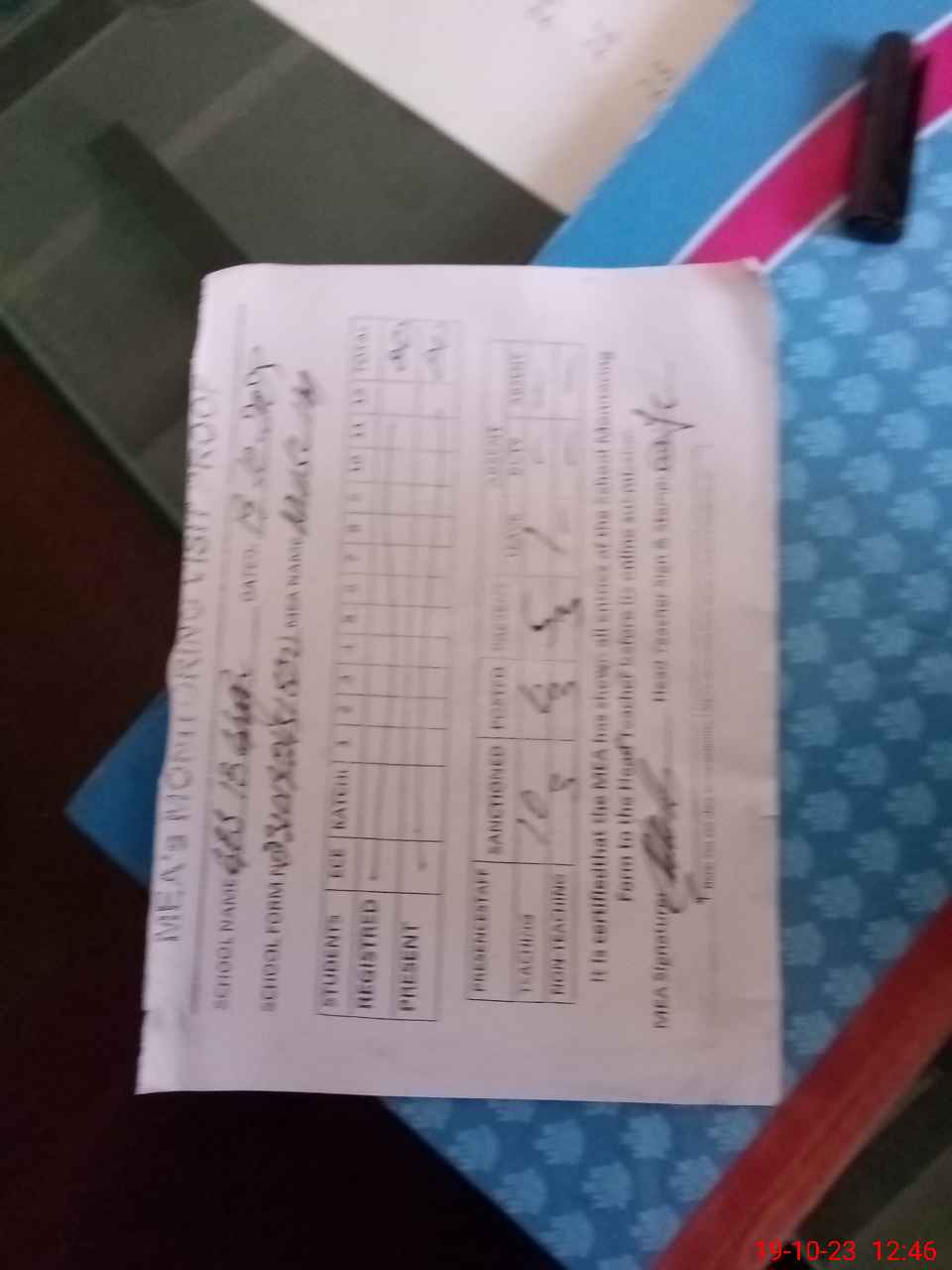 | Attendance Register | Head Teacher | MEA with School | Visit Proof |