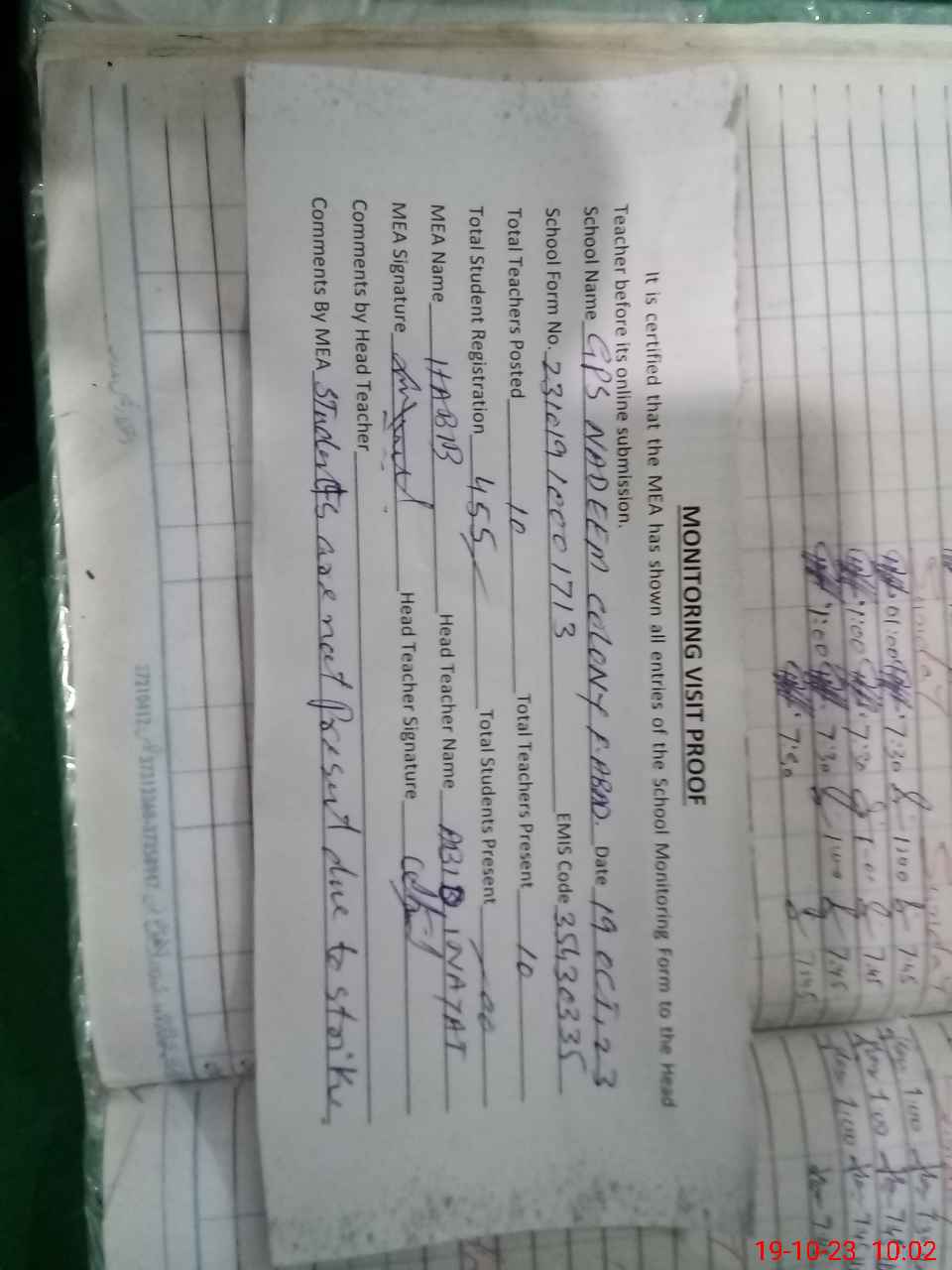 | EMIS Code: 35430335 | Name of School: GPS NADEEM COLONY FAROOQABAD | |||