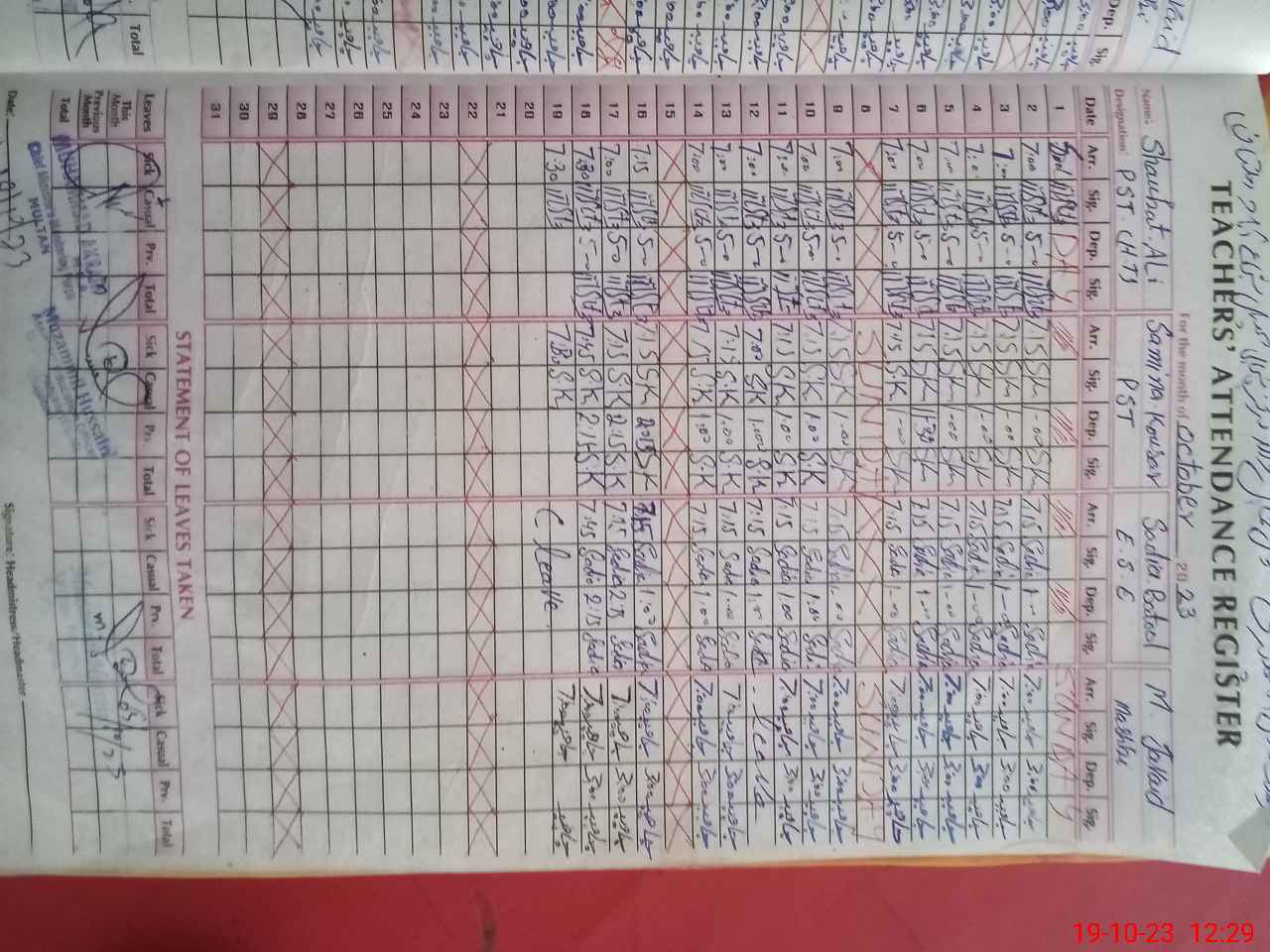 | Name: Sh**** Al**** Designation: (School Headmaster's/Headmistress's) PST/PTC/JV Phone/Cell Number: 03**** |