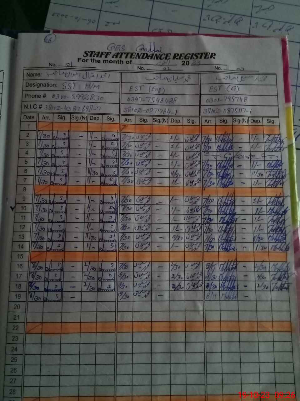| Name: AM**** IQ**** Designation: (School Headmaster's/Headmistress's) S S E Phone/Cell Number: 03**** |