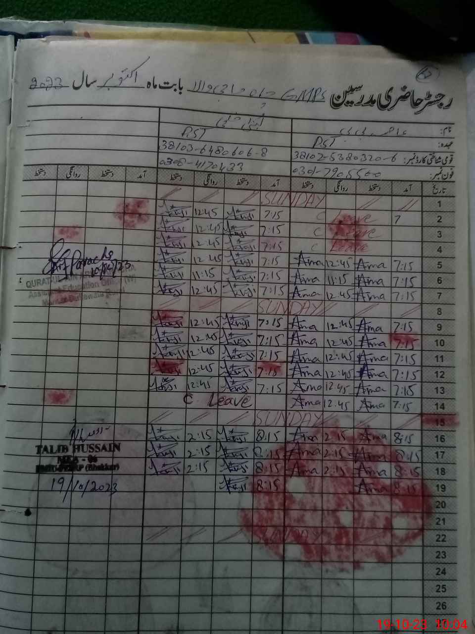| Name: As**** BiBi Designation: (School Headmaster's/Headmistress's) PST Phone/Cell Number: 03**** |