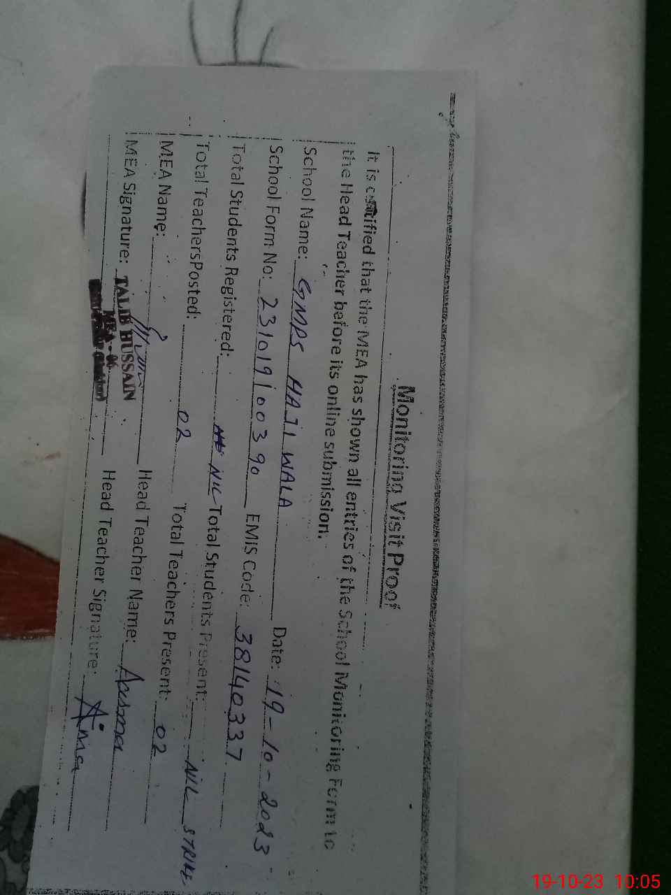 | EMIS Code: 38140337 | Name of School: GMPS HAJI WALA | |||