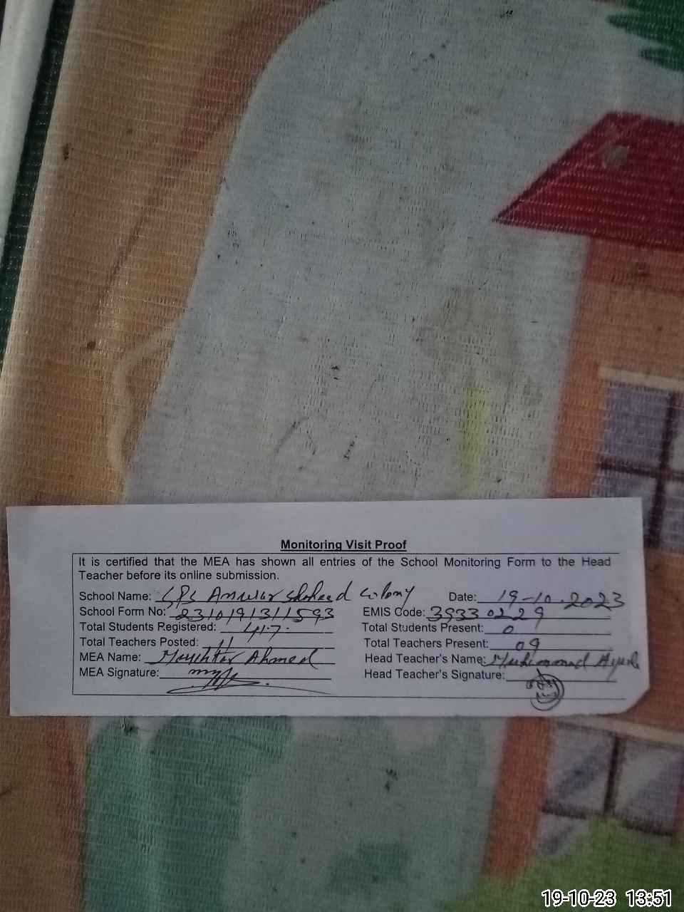 | EMIS Code: 39330229 | Name of School: GPS ANWAR SHAHEED COLONY | |||