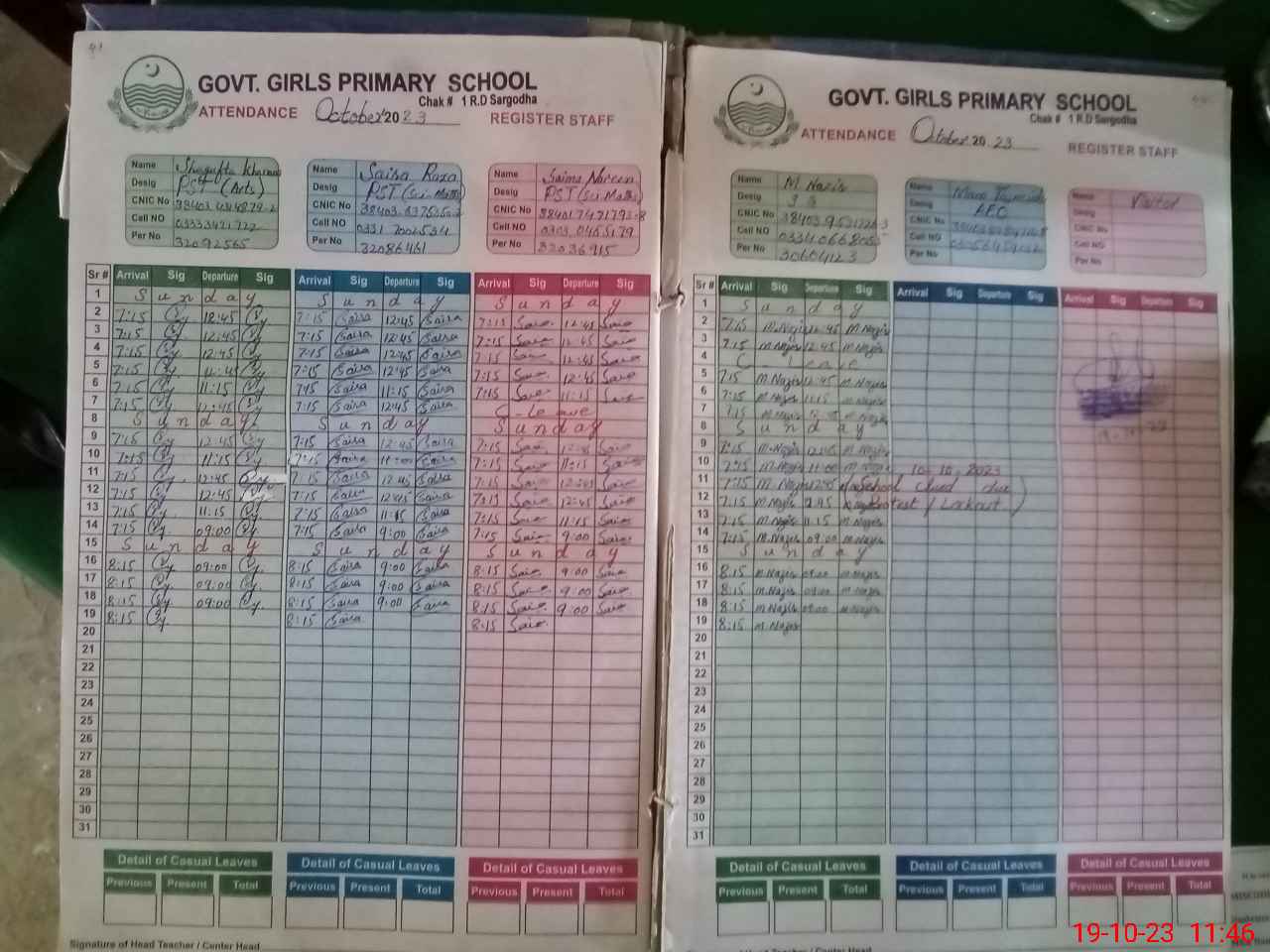 | CNIC | Full Name | Designation | R/C | Absence During Last Calender Month |