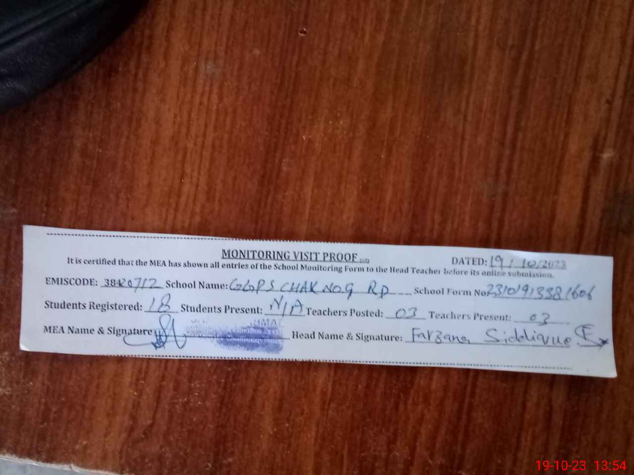 | EMIS Code: 38420712 | Name of School: GGPS CHAK NO.9 REMOUNT DEPOT | |||