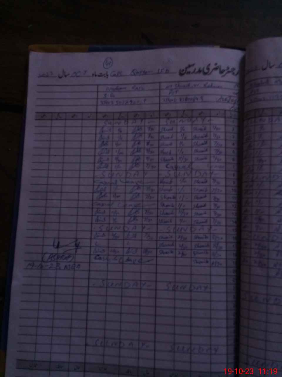 | CNIC | Full Name | Designation | R/C | Absence During Last Calender Month |