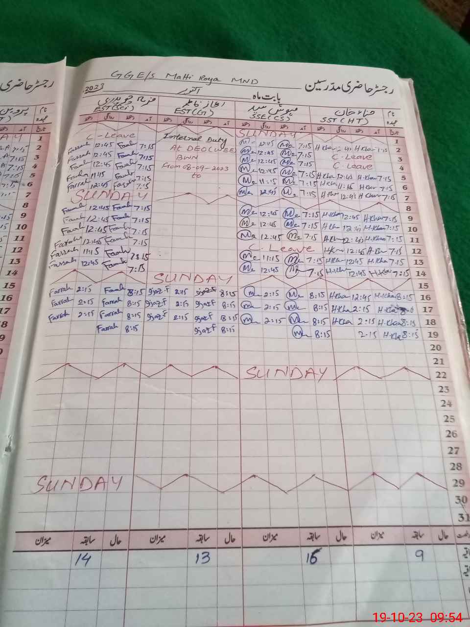 | Leave | Duty | Absent | Maternity | Medical | Ex- Pak |