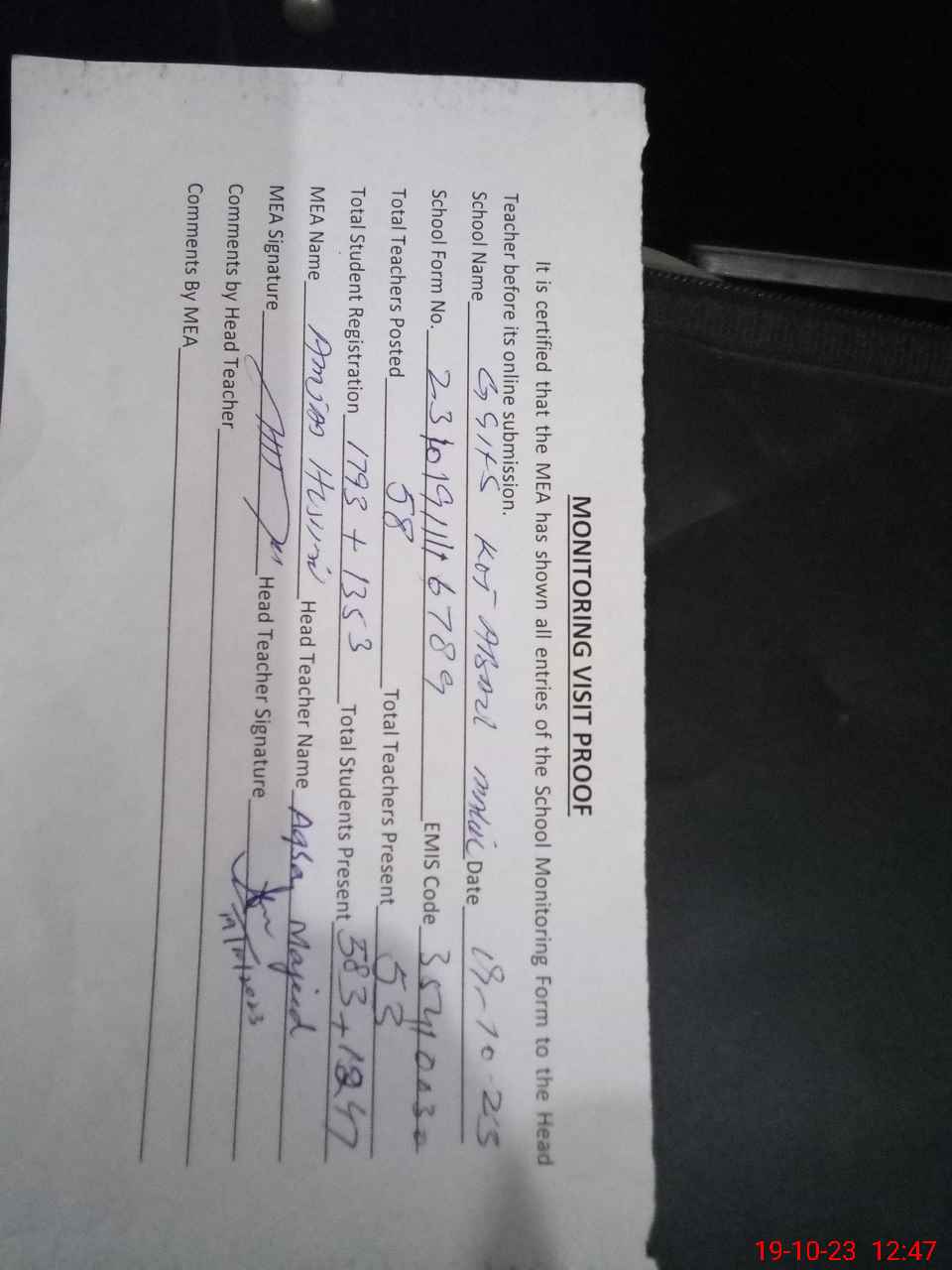 | EMIS Code: 35410030 | Name of School: GGHS KOT ABDUL MALIK SCHEME NO.1 | |||