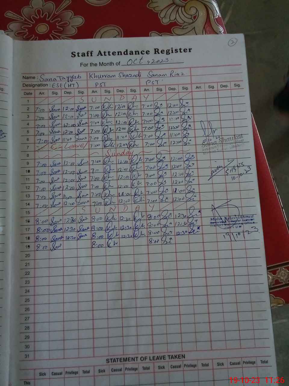 | Name: Sa**** Ta**** Designation: (School Headmaster's/Headmistress's) Head Teacher Phone/Cell Number: 03**** |
