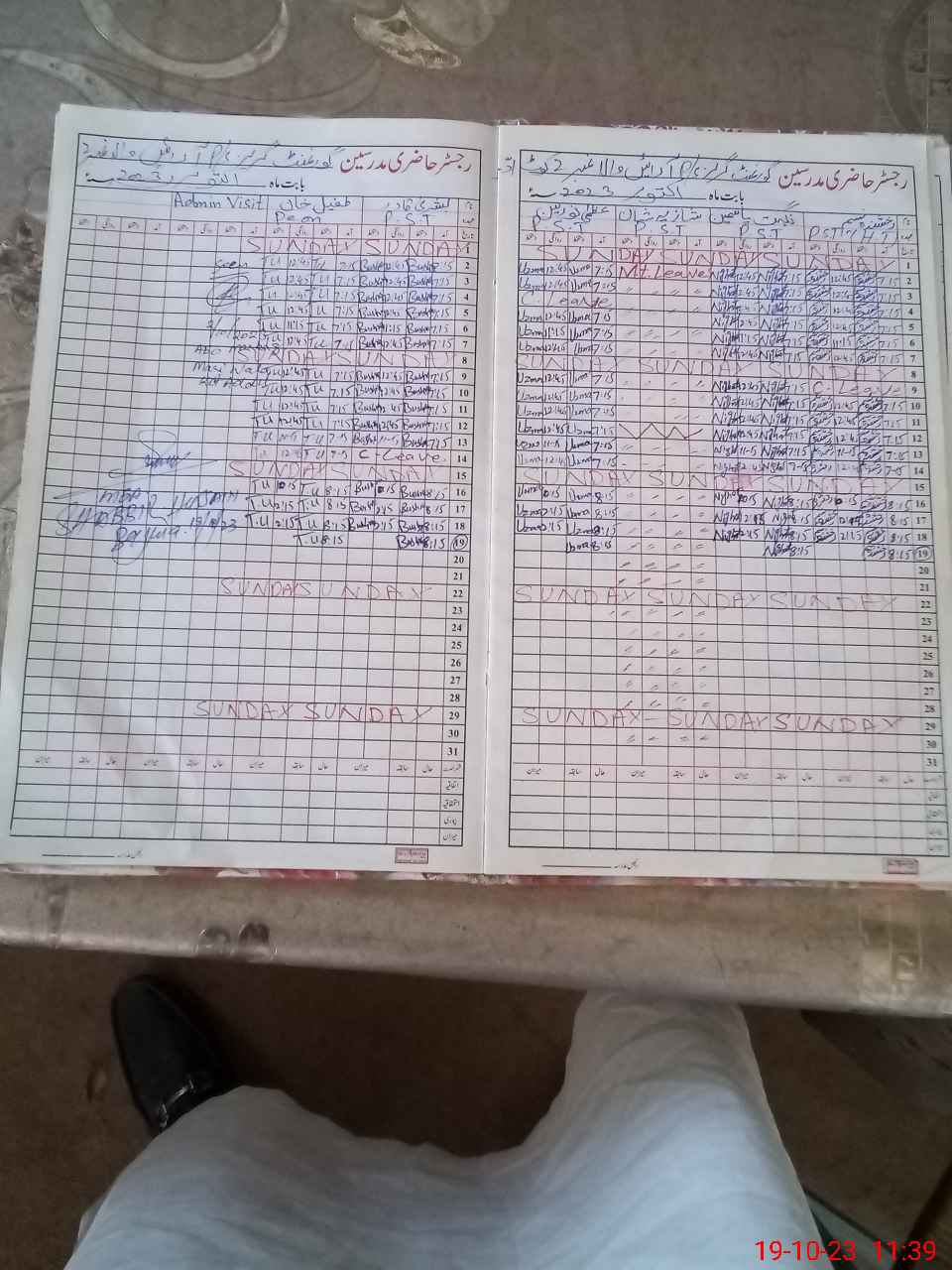 | Leave | Duty | Absent | Maternity | Medical | Ex- Pak |