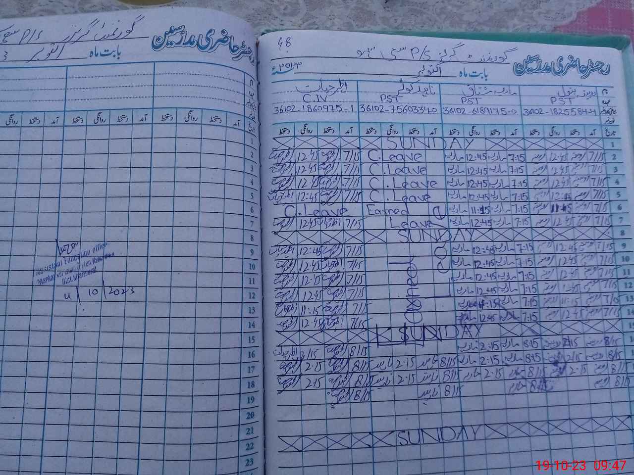 | CNIC | Full Name | Designation | R/C | Absence During Last Calender Month |