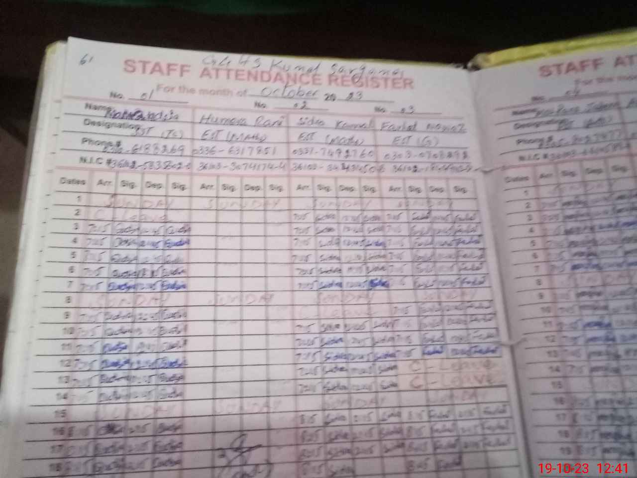 | CNIC | Full Name | Designation | R/C | Absence During Last Calender Month |