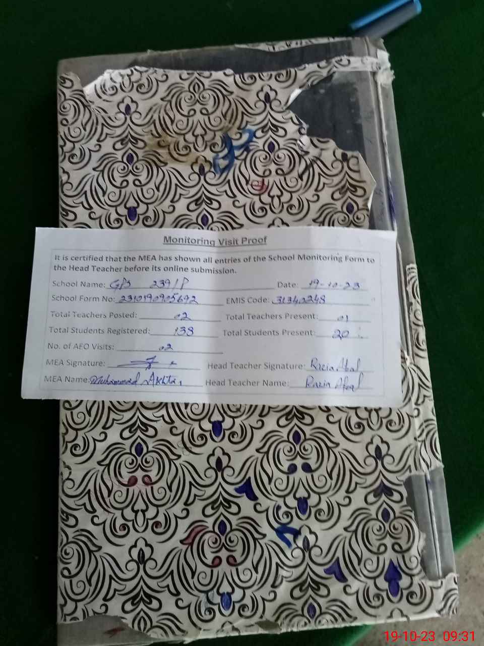 | EMIS Code: 31340248 | Name of School: GPS CHAK NO 239 P | |||