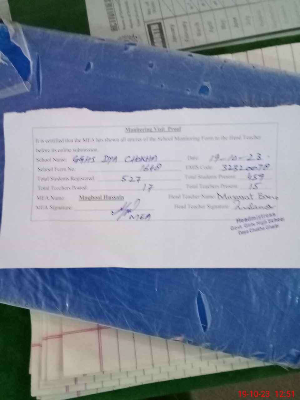 | EMIS Code: 32320078 | Name of School: GGHS DAYA CHOKHA | |||