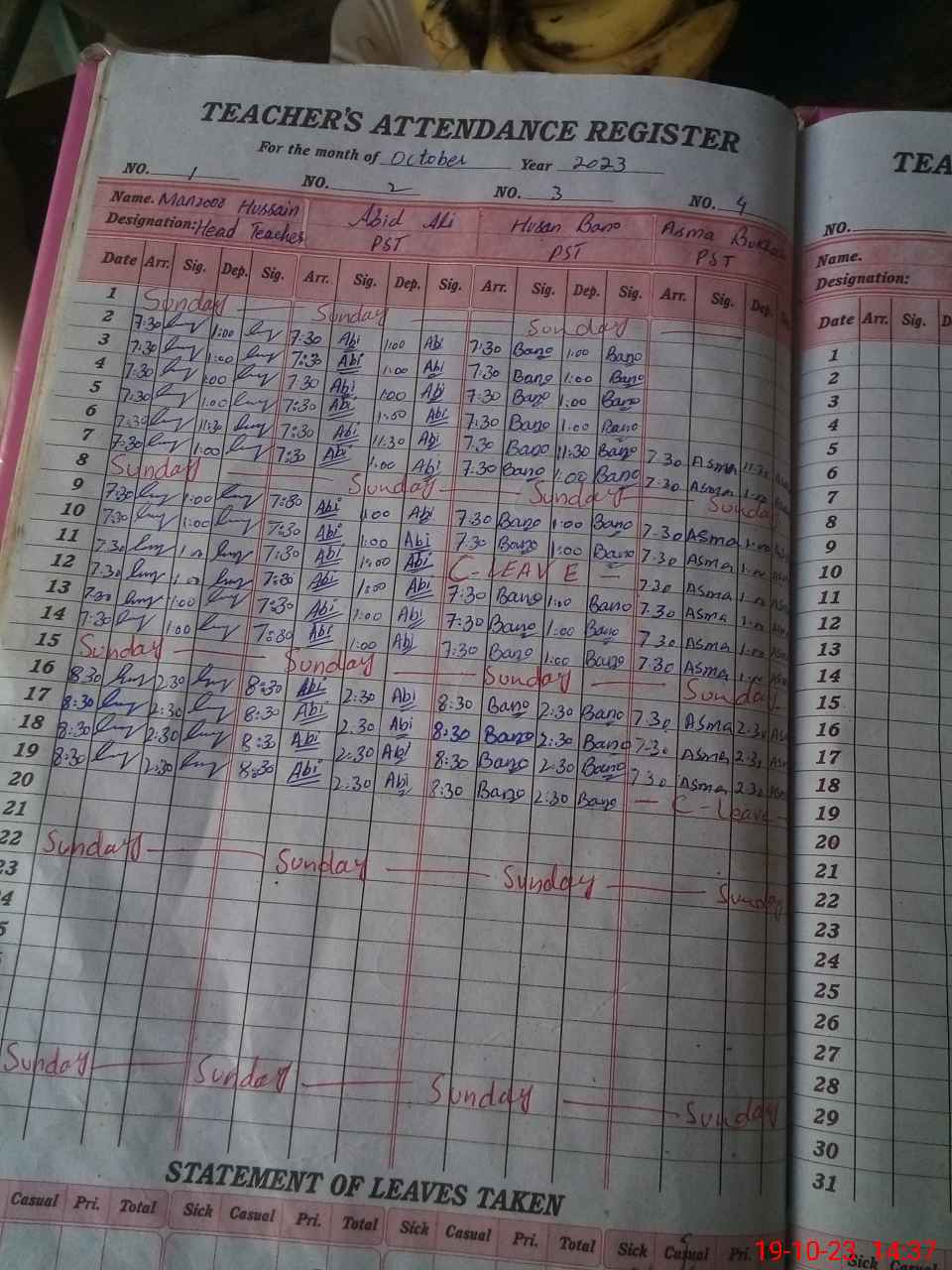 | Total no. of Classrooms: 2 No. of Classrooms Used for Teaching: 2 No. of Classrooms Storing Old Furniture, FTBs, etc: 0Comments if Any: Teaching staff are present but school information and record not provided to Mea Talib hussain due to strike |