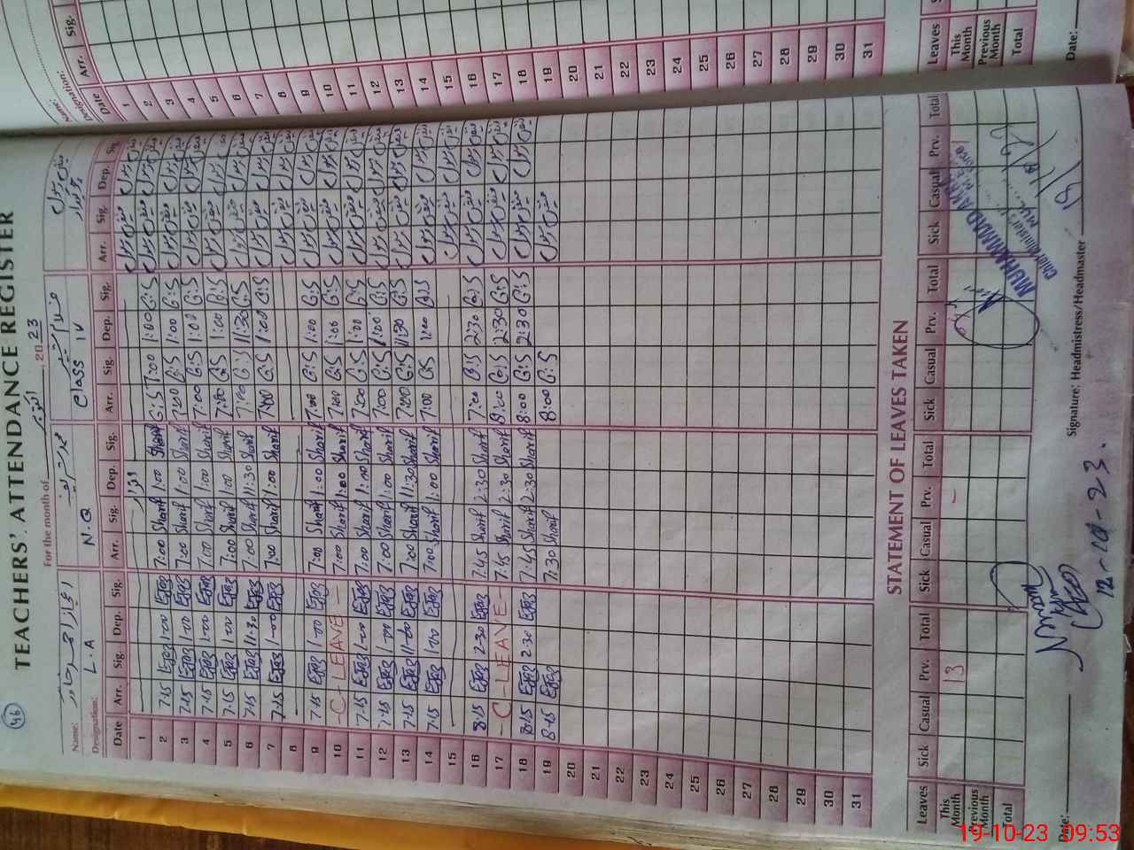 | Name: MSh**** Sa**** Designation: (School Headmaster's/Headmistress's) IC Teacher Phone/Cell Number: 03**** |