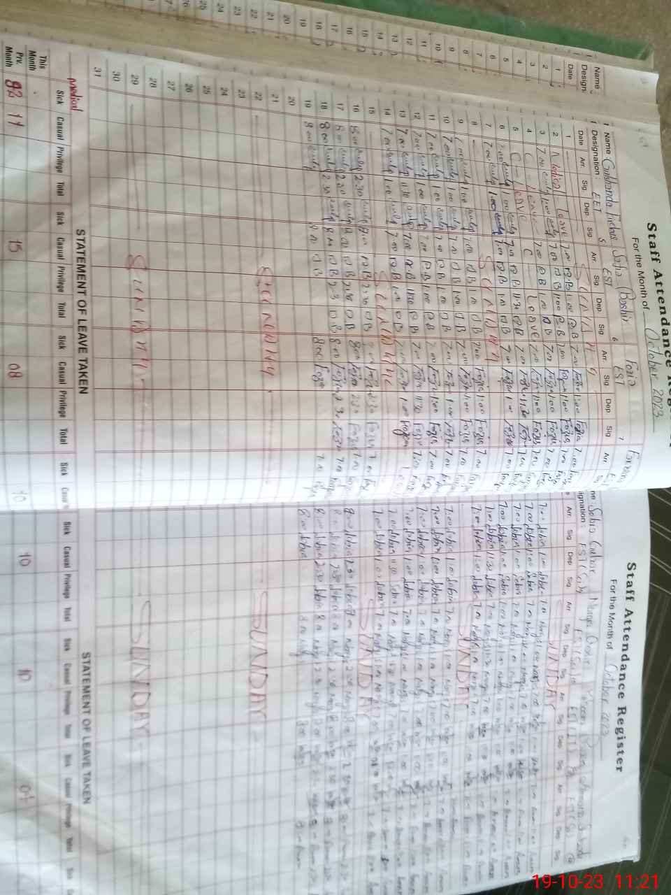 | Leave | Duty | Absent | Maternity | Medical | Ex- Pak |