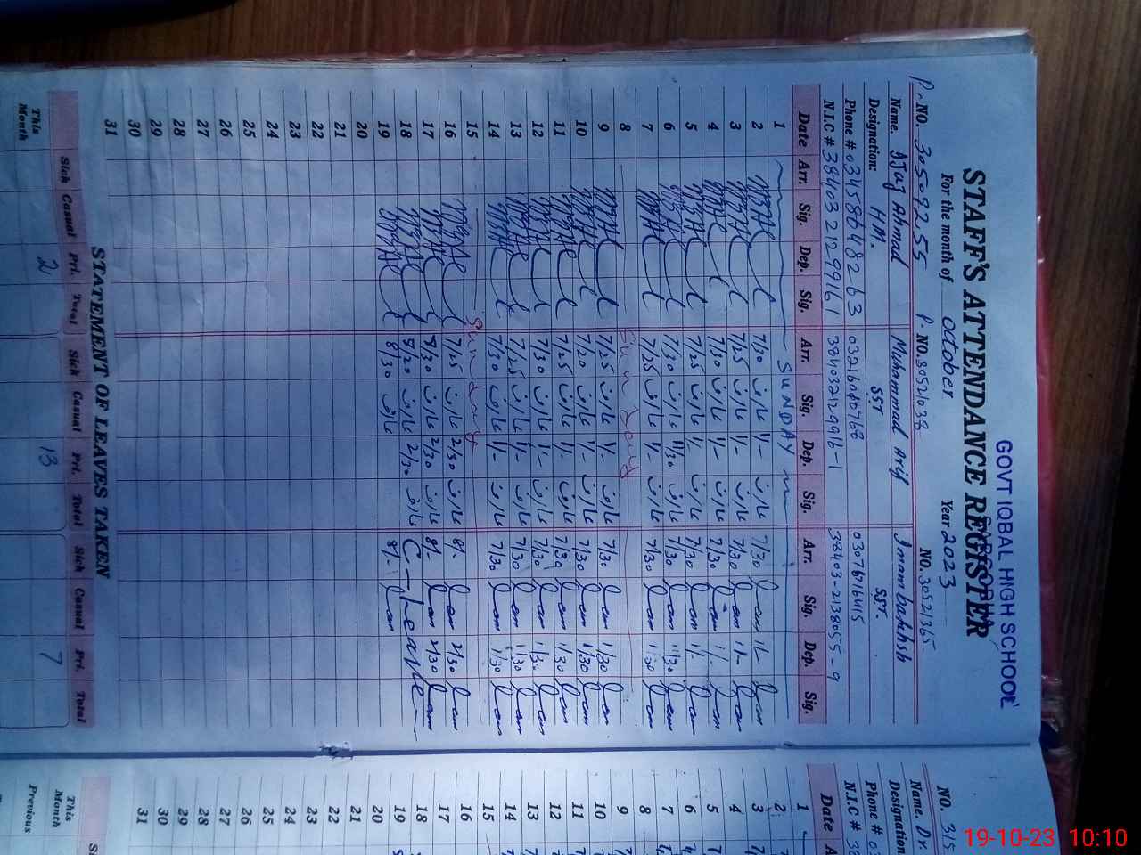 | Name: IJ**** AH**** CH**** Designation: (School Headmaster's/Headmistress's) H M Phone/Cell Number: 03**** |