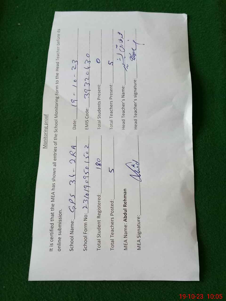| EMIS Code: 39320430 | Name of School: GPS CHAK NO. 34/ 2-RA | |||