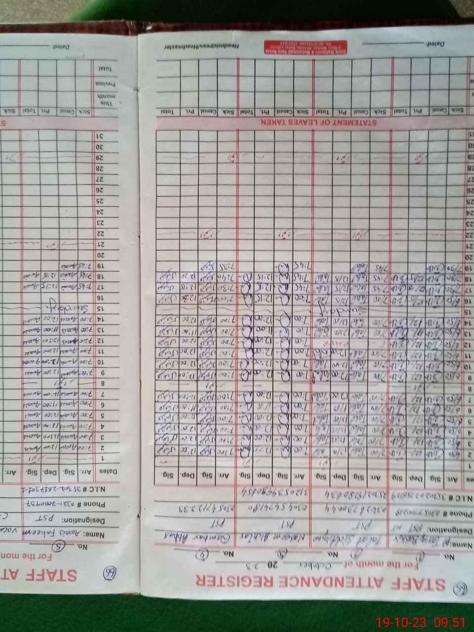 | Name: Mu**** Ha**** Designation: (School Headmaster's/Headmistress's) PST Phone/Cell Number: 03**** |