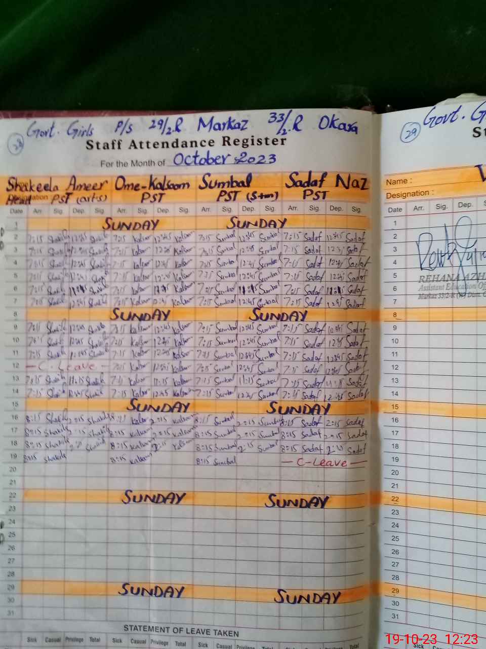 | District: OKARA | Tehsil: OKARA | Markaz: 33/2R - FEMALE | Level: Primary | |