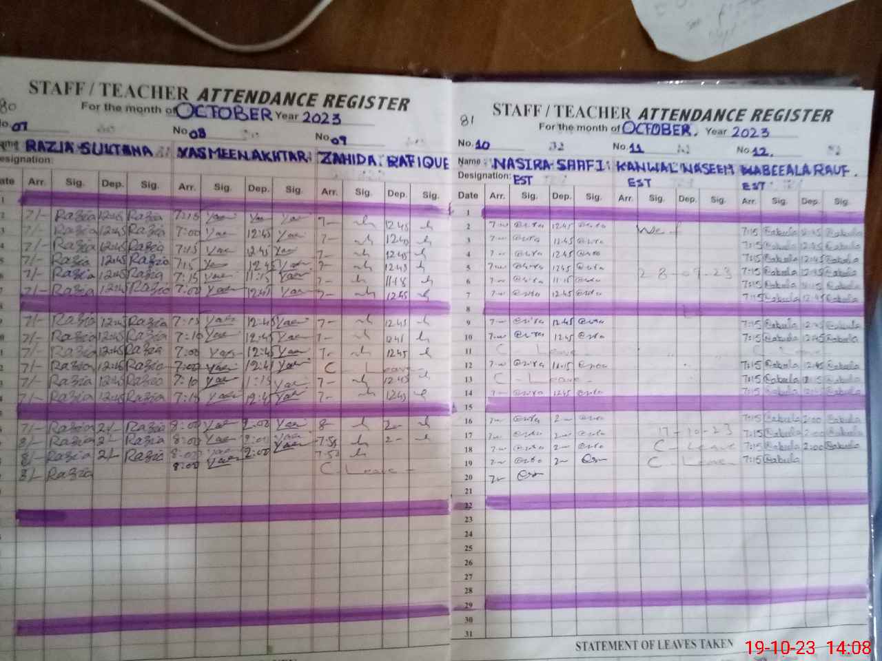 | CNIC | Full Name | Designation | R/C | Absence During Last Calender Month |