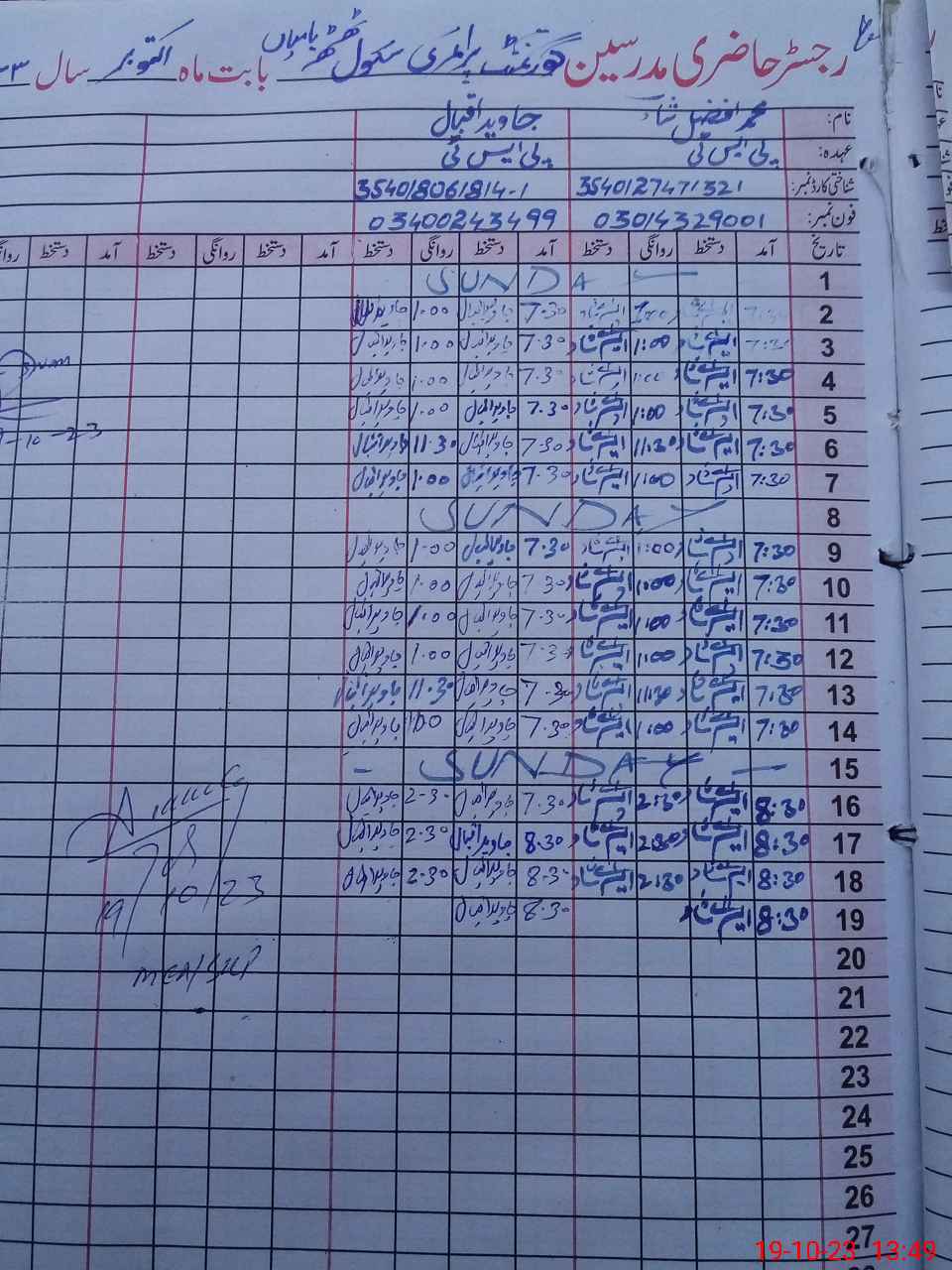 | Name: M.AF**** Designation: (School Headmaster's/Headmistress's) PTC/JV Phone/Cell Number: 03**** |