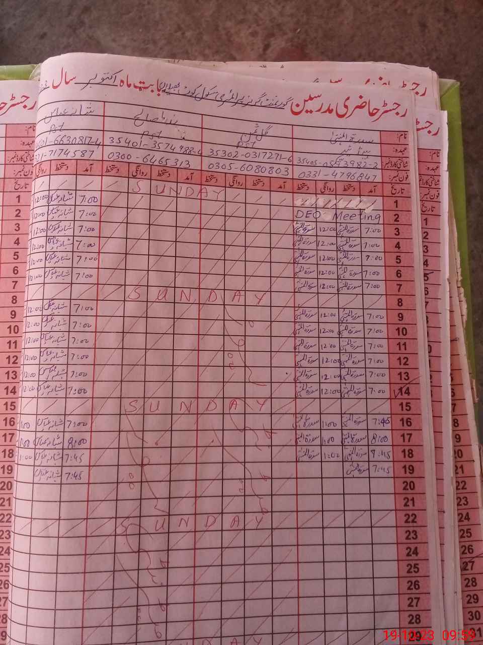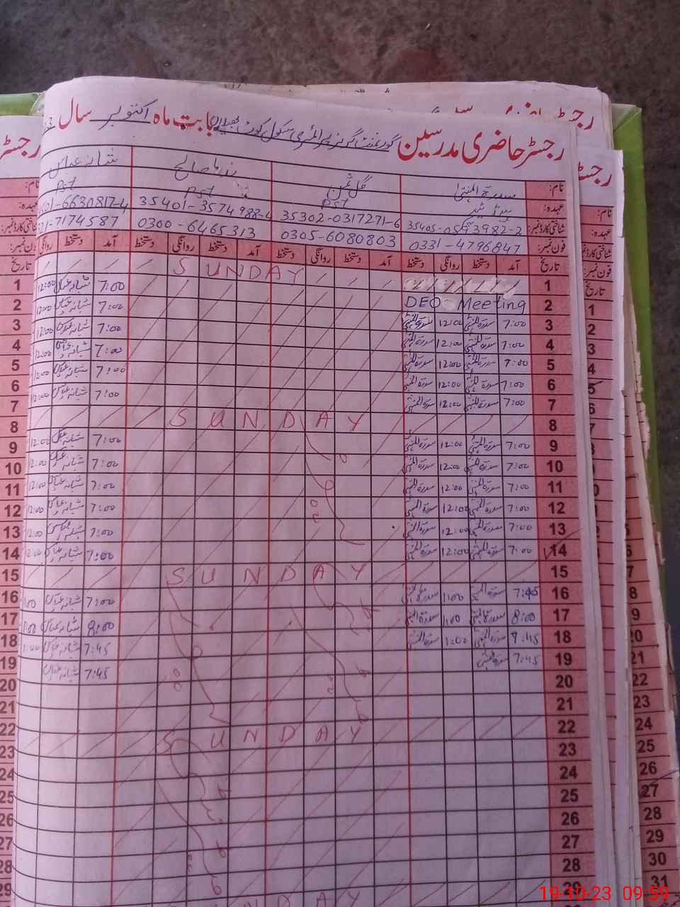 | CNIC | Full Name | Designation | R/C | Absence During Last Calender Month |