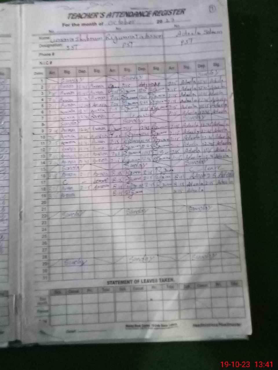 | Name: Ri**** Ta**** Designation: (School Headmaster's/Headmistress's) PST Phone/Cell Number: 03**** |
