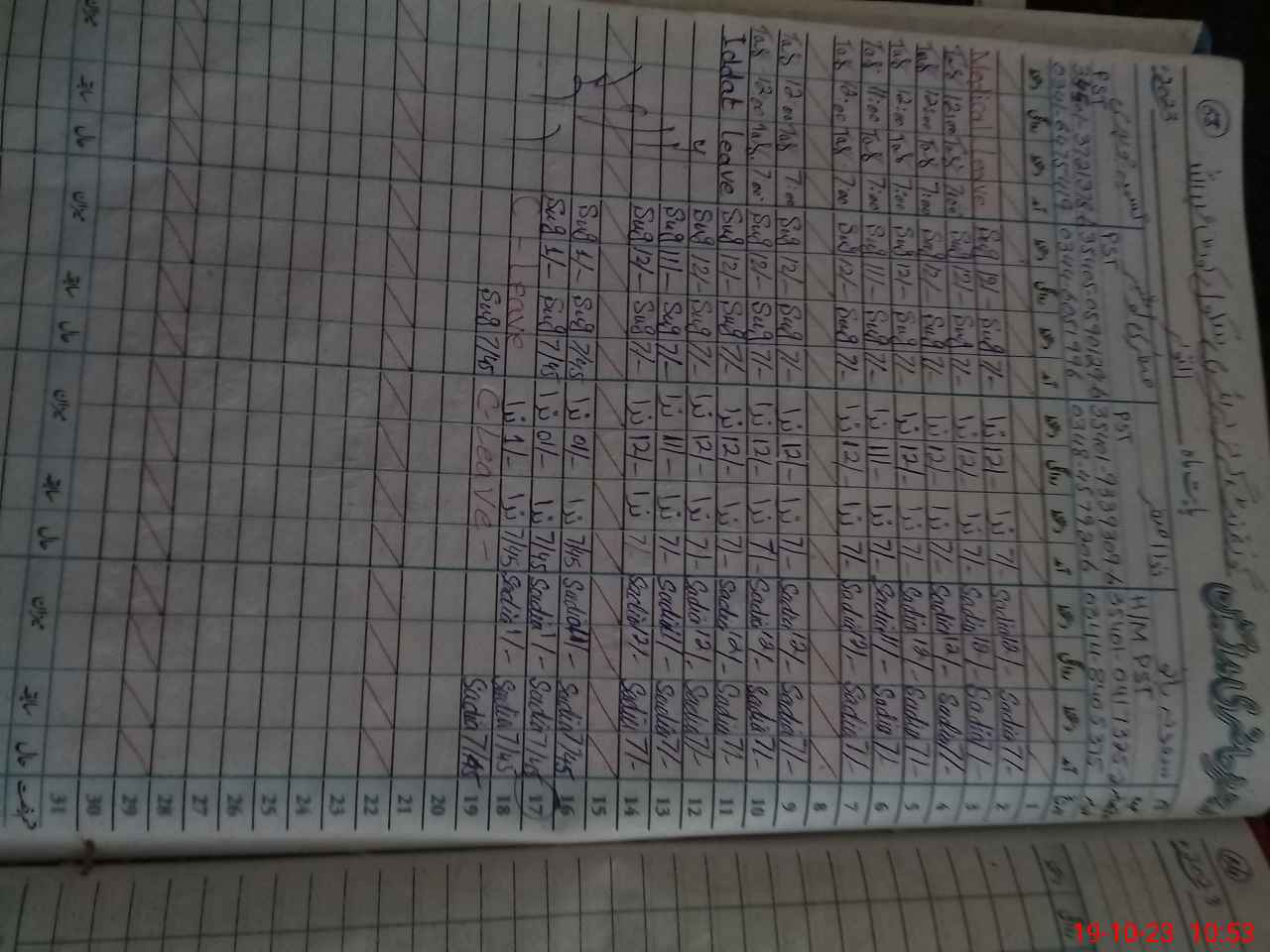 | Leave | Duty | Absent | Maternity | Medical | Ex- Pak |