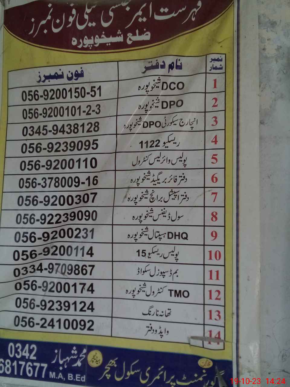 | District: SHEIKHUPURA | Tehsil: MURIDKE | Markaz: MURAD PUR-MALE | Level: Primary | |
