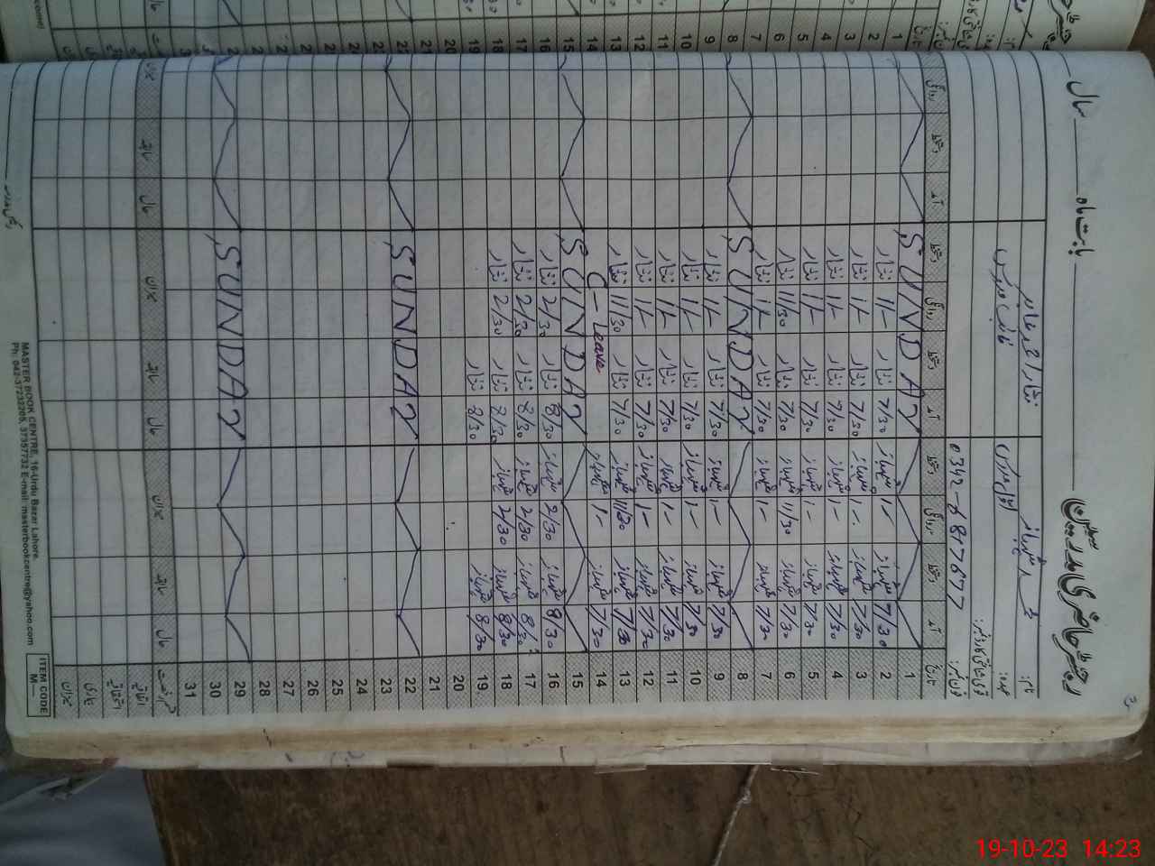 | CNIC | Full Name | Designation | R/C | Absence During Last Calender Month |