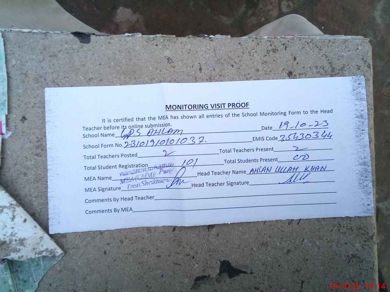 | Certified that this School was Inspected by the Undersigned MEA/DMO Today and the Information Stated Above is as Per Record. | |||||