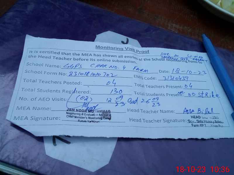 | EMIS Code: 31310439 | Name of School: GGPS CHAK NO 4/P | |||