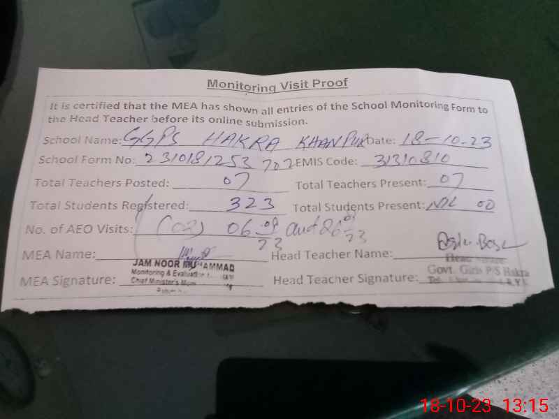 | EMIS Code: 31310810 | Name of School: GGPS HAKRA | |||