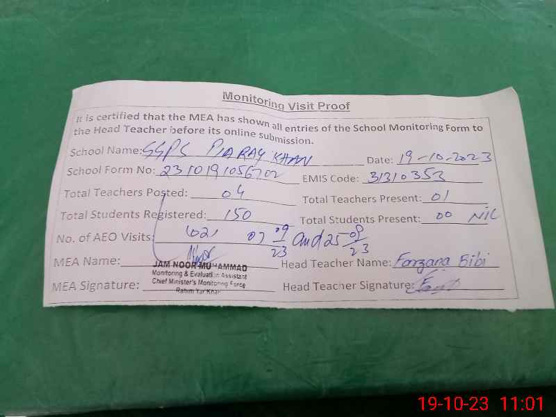 | EMIS Code: 31310353 | Name of School: GGPS PAYARA KHAN | |||