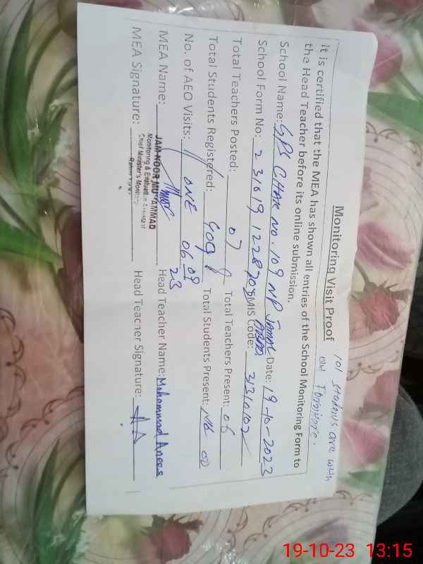 | EMIS Code: 31310102 | Name of School: GPS CHAK 109/NP JAMAL ABAD | |||