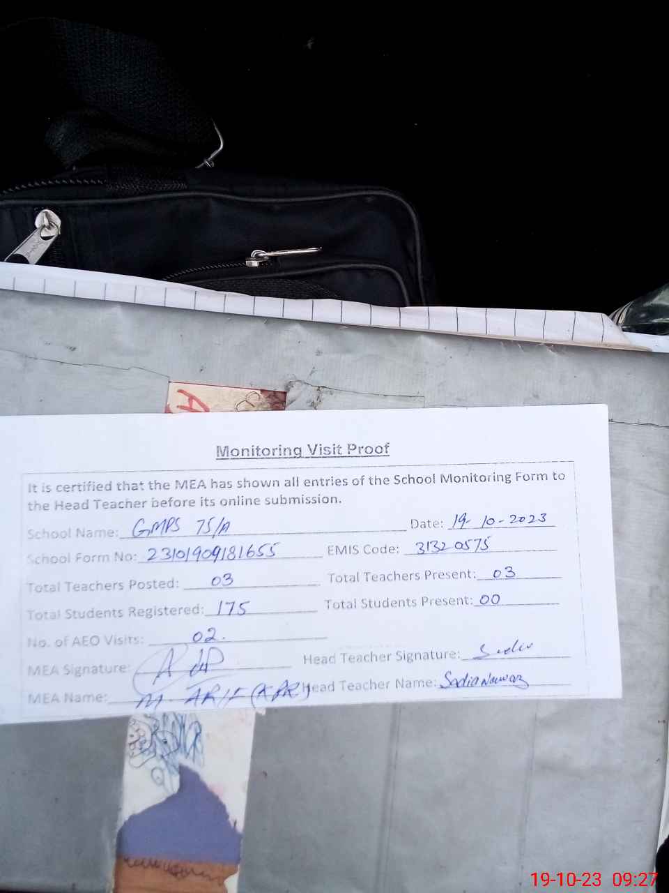 | Attendance Register | Head Teacher | MEA with School | Visit Proof |