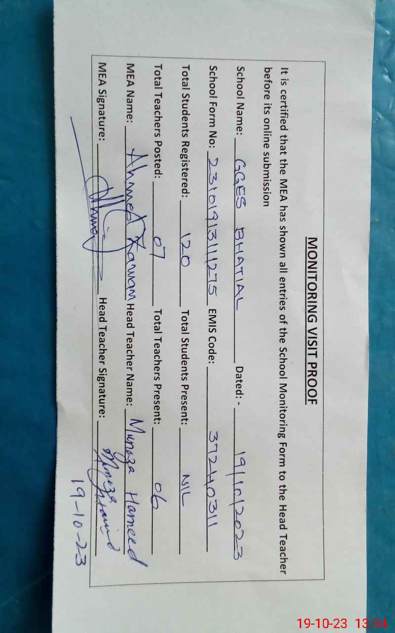 | EMIS Code: 37240311 | Name of School: GGES BHATIAL | |||