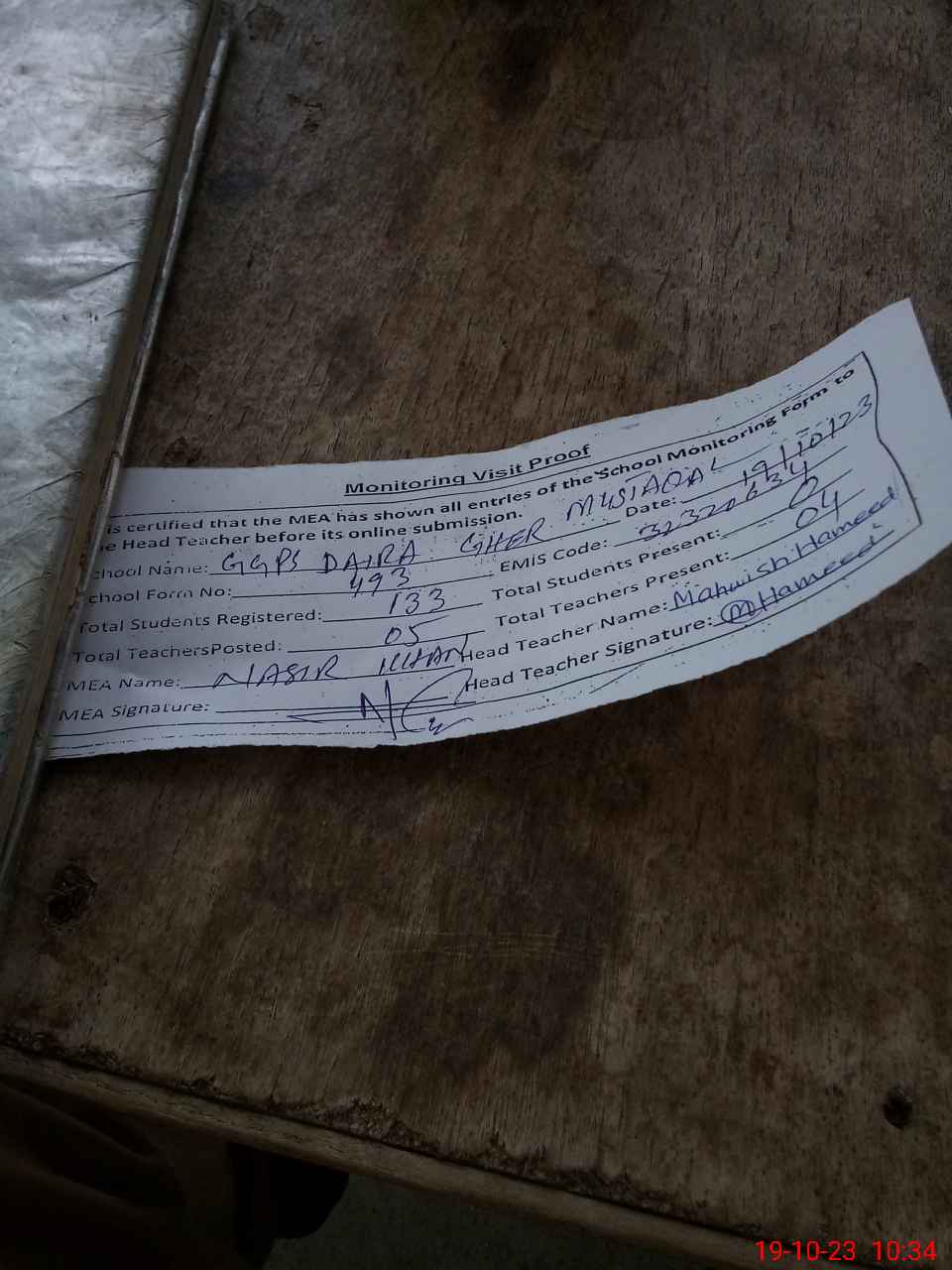 | EMIS Code: 32320634 | Name of School: GGPS DIARA GHAIR MUSTAQIL | |||