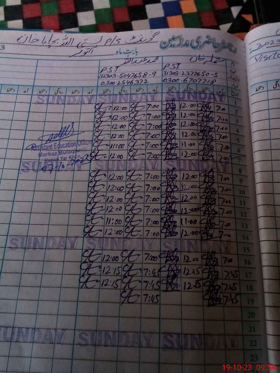 | Name: SH**** KH**** Designation: (School Headmaster's/Headmistress's) PST/PTC/JV Phone/Cell Number: 03**** |