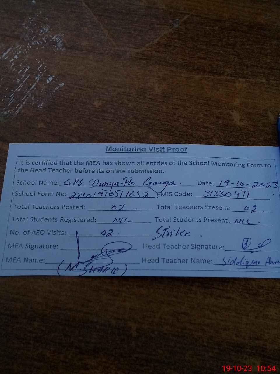 | EMIS Code: 31330471 | Name of School: GPS DUNYA PUR GANGA | |||