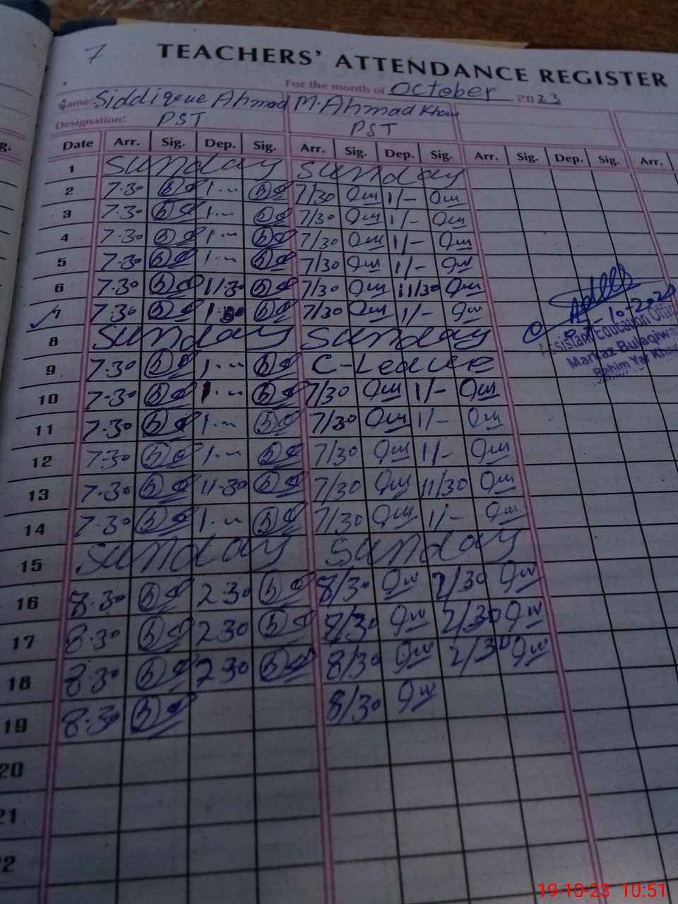 | Name: SI**** AH**** Designation: (School Headmaster's/Headmistress's) PST/PTC/JV Phone/Cell Number: 03**** |